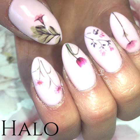 We can paint onto your own nails as a semi-permanent colour or you can have it painted over your overlays or extensions, as shown above.